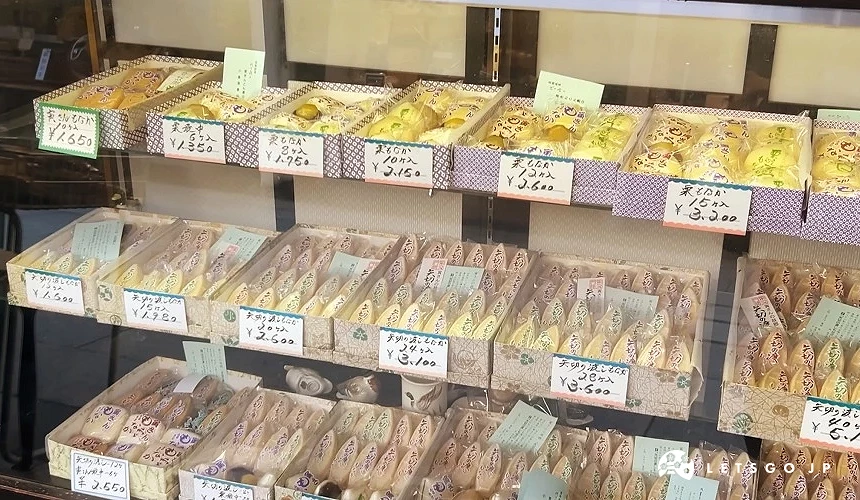 從大正年代就開始營業的「金子屋」,主打商品是手燒煎餅,在店內製作的煎餅有20種以上口味,咬下去有米香、脆口又不會太硬,煎餅可以每件買,也有大包裝的可以買來送人,一場來到就推薦試試現做的煎餅!