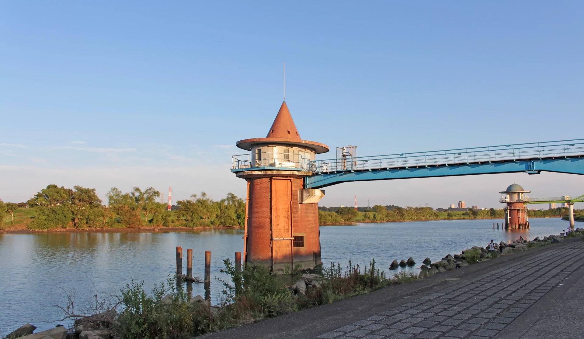 「金町淨水場取水塔」佇立在江戶川旁,是貨真價實地處理東京飲用水的設施一部分,外觀有如戴著一頂帽子,也曾在《男人真命苦》與漫畫《烏龍派出所》中出現過,很適合前來散步拍紀念照。