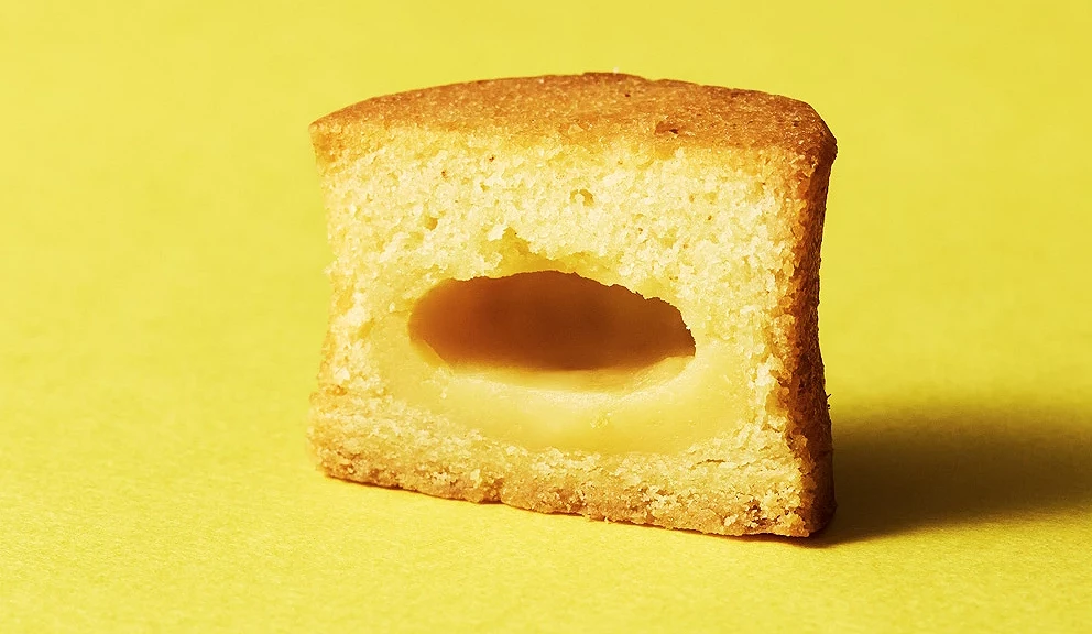 Butters Craft Butter Sweets 使用紐西蘭產的草飼奶油,將布列塔尼酥餅與費南雪夾入牛奶醬,烤成三層結構的精緻點心。為了充分引出奶油風味,費南雪中大量加入焙烤至榛果色的焦化奶油,香氣迷人。牛奶醬則巧妙運用奶油製程的副產物脫脂奶粉調製而成,完美展現「不浪費、享受美味」的理念。三層不同口感交織,每一口都是奶油的深度風味體驗。