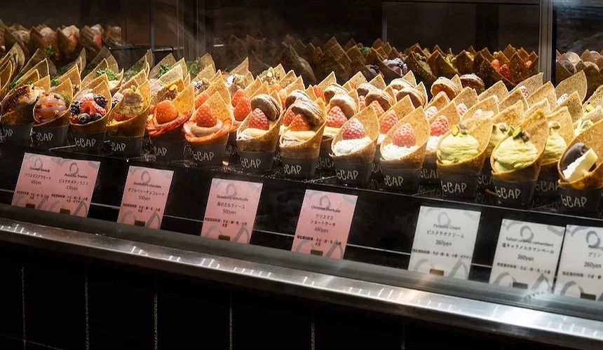 由 I'm donut?創辦人平子良太監製的「SOBAP(ソバープ)」,選用蕎麥粉製作成掌心大小的可麗餅,打破以往可麗餅無法當伴手禮的框架。全系列多達18種口味,從經典卡士達、砂糖奶油、紅豆奶油,到創新的紫蘇漿果奶酪、鹽味焦糖卡門貝爾起司,甜鹹兼具。甜口味層次豐富,鹹點口味如印度烤雞、火腿羽衣甘藍也相當吸引人。小巧可愛的尺寸搭配多元口味,讓 SOBAP 成為兼具品質與便利性的優質伴手禮選擇。
