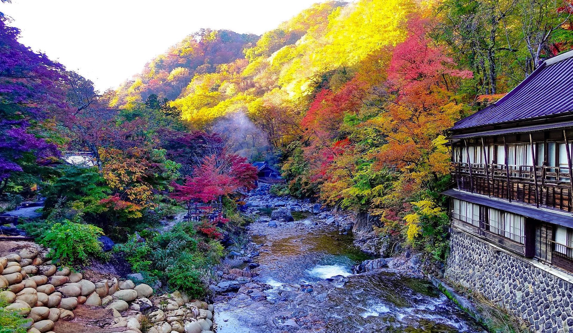 寶川溫泉汪泉閣擁有日本少見的巨大原始露天混浴浴池,直接依溪流和天然岩石而建,感受宛如回歸自然的泡湯體驗。這裡沒有人工圍牆,視野開闊,水溫自然調節,四季景色變化豐富:春賞新綠、夏聽流水、秋看楓葉、冬享雪景,完美結合自然景觀與溫泉文化,是其他溫泉無法比擬的獨特體驗。
