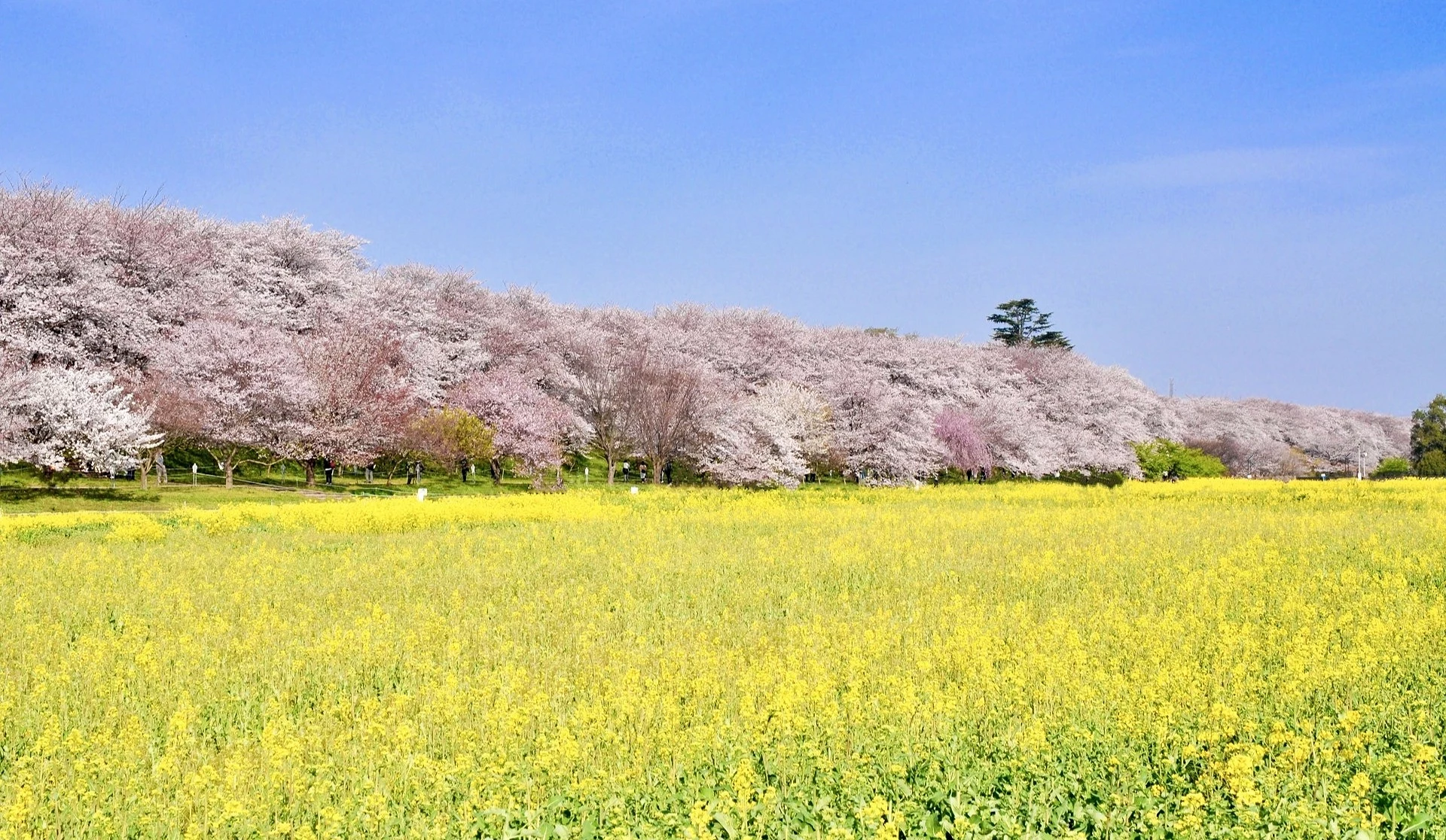 權現堂櫻堤:油菜花×櫻花並行的夢幻河堤步道