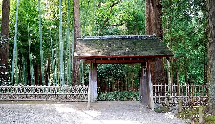 穿越好文亭表門(原正門)之後,會來到「中庸世界」,也就是人類所在的世界,再穿越一之木戶之後,就進到「陰的世界」:四周皆由竹林、杉木所包圍,日照曬不進來,走進這裡能感受到徐徐涼意。其中,有一處沁涼湧泉「吐玉泉」,是自然地形造就出來的天然噴泉。