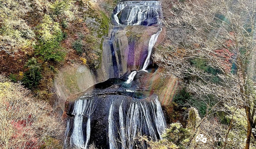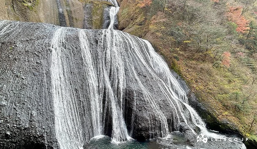 位在茨城縣高萩市的「花貫溪谷」屬於「花園・花貫縣立自然公園」,以花貫川的清澈溪流與茂密森林交織出的自然美景聞名,是當地知名的賞楓勝地。沿途有許多值得造訪的景點,包括氣氛靜謐的「不動瀑布」、流傳神秘傳說的「名馬里ヶ淵」,以及最具代表性的「汐見瀑吊橋」,約60公尺長的吊橋橫跨在溪谷之上,瀑布自山壁傾瀉,紅葉與清流交織成一幅壯麗的風景畫。除了秋天的紅葉,四季更迭也會帶來截然不同的風貌。