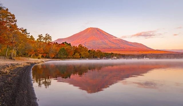 「河口湖」是富士五湖的中心,也是拍攝「逆富士」最受歡迎的地點之一,天氣晴朗時,可清楚欣賞富士山倒映在湖面的壯麗景色。搭「天上山纜車」登高眺望,能從高處一覽富士山全景;或者乘坐遊覽船漫遊湖上,從不同角度仰望富士山之美。春季櫻花與富士山同框、夏季適合環湖散步、秋天可欣賞紅葉迴廊夜間點燈,冬季則能拍到雪化妝的富士山與清澈湖景,四季皆值得造訪。更詳細的河口湖自由行攻略,請參考以下專文介紹。