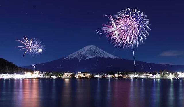 夏季舉辦的「河口湖湖上祭」可說是山梨夏季的代名詞,大規模煙火在湖面上空綻放,搭配富士山剪影與湖面倒影,畫面相當震撼。另一方面,冬季也有於週末晚間施放的「河口湖冬花火」,靜謐的湖畔、覆雪的富士山與夜空中的煙火交織出專屬冬季的浪漫景色,相較於夏季人潮較少,而且同框的富士山有覆上白雪喔!