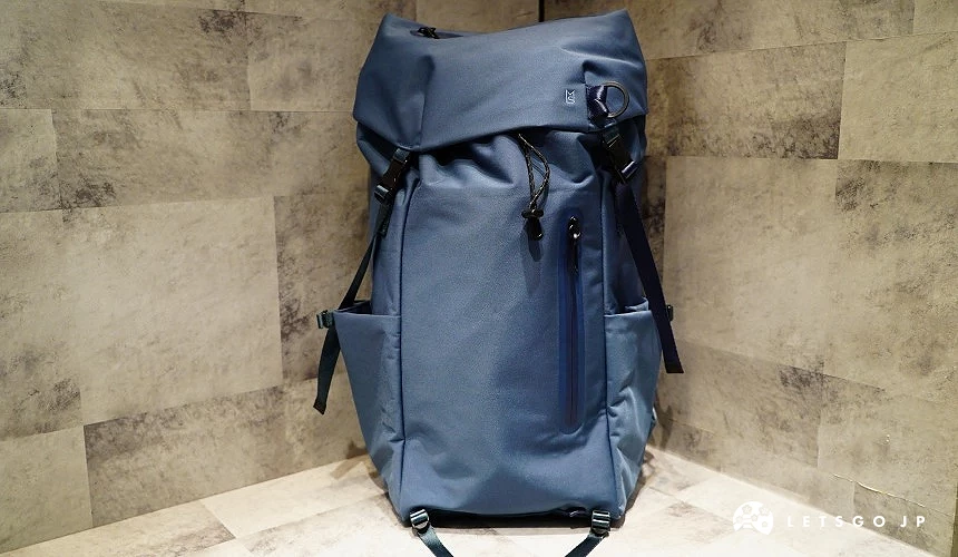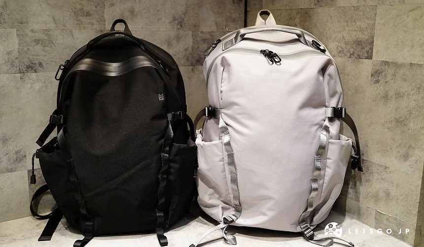 上面這款「側邊扣環背包」(LIKID サイドバックルバックパック),特色是背包兩側有可調整長度的側邊扣環,一方面讓兩側放的雨傘、水瓶不易掉落,一方面可以讓包面寬度變窄,讓包型曲線更自然。整體布面採強撥水材質,還特別在兩側袋底加裝小孔,袋底積水可更快排出。共有可放13寸電腦的 M 尺寸、可放15寸電腦的 L 尺寸,以及黑、灰、青三色可選。