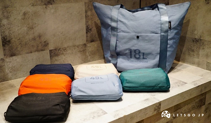 「MILESTO UTILITY 多功能折疊包」(ポケッタブルトートバッグ)則是旅行、購物必備收納包之一。不用時可折疊省空間,一攤開就是延伸於行李箱之上的收納空間。具備 2WAY 設計,可選擇手提或肩背,背面有可固定於行李箱拉桿的帶子,帶面上另外設計小口袋,方便再偷塞小物!與壓縮多功能收納整理袋同樣使用 CORDURA® 聚酯纖維,堅固性與撥水性極佳。耐重高達50公斤,共18L、35L、45L 三種尺寸,三種尺寸都是手提行李可帶上機的大小,有橘、黑、綠、藍灰、卡其、紺色6色可選。