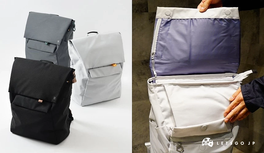 「翻蓋式大容量背包」(LIKID フラップバックパック)有標準款、 XL 兩種尺寸,貼近喜歡一個包就能進所有行李的旅遊習慣,對於經常出差的族群而言,不但能直接手提上飛機,也還能節省託運等行李的時間,非常便利。另一款「LIKID 肩背包」(LIKID ショルダーバッグ)除了超強防水功能,背帶部分採扣環固定設計,一鍵就能脫下,電梯、電車內等小空間也能輕鬆穿脫,磁吸式掀蓋設計還能無聲拿取物品。共有 M、L 兩種尺寸,同樣也有黑、灰、青三色可選。