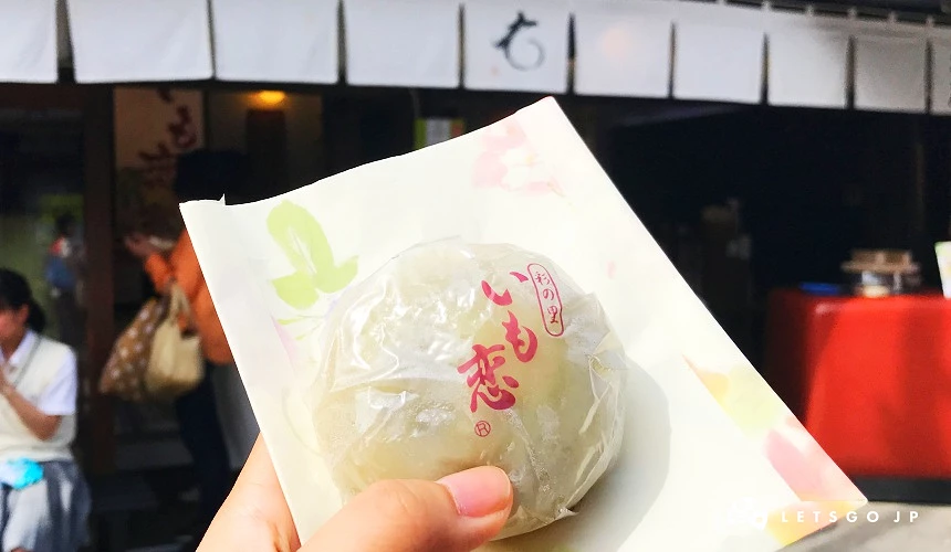 另一個來川越必吃的街邊小吃就是這個「芋戀」(いも恋)了,「芋戀」的外皮使用山藥粉和白玉粉製成,Q軟有嚼勁,裡面包上滿滿紅豆泥跟整塊地瓜,三重口感吃起來很豐富!