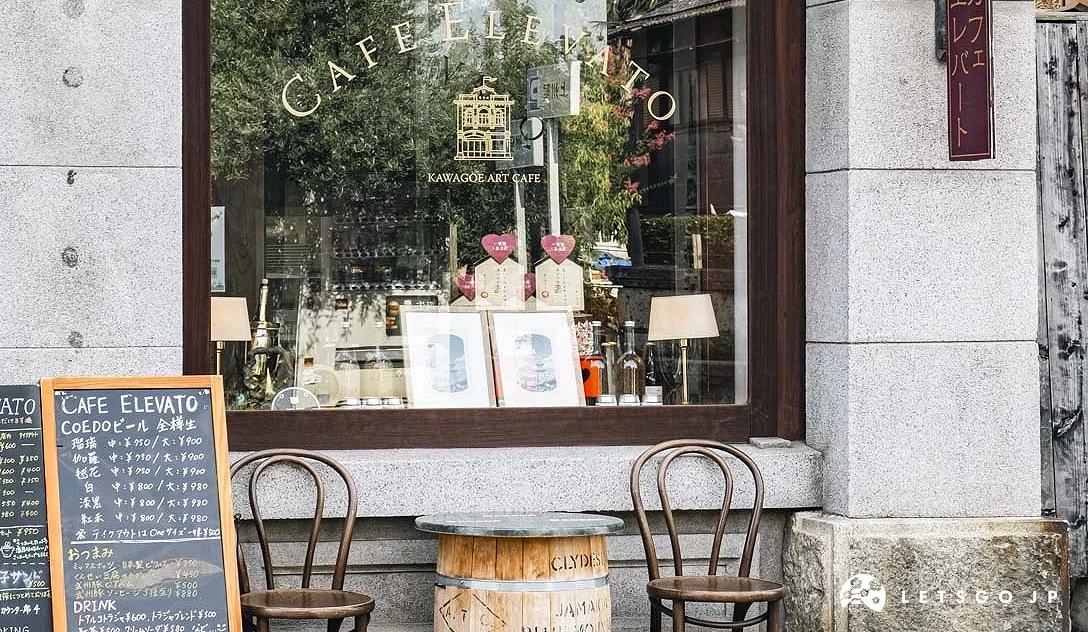 「川越Art Cafe Elevato」有著浪漫且保存良好的洋館外觀,這棟建築物建於1915年,被指定為川越市文化財。現在則是充滿文藝氣息的咖啡廳。大量使用木頭建材與桌椅,讓屋內充滿溫暖且莊重的氛圍,二樓的窗邊位置看出去就是和菓子老鋪「龜屋」,真的讓人彷彿置身百年前。