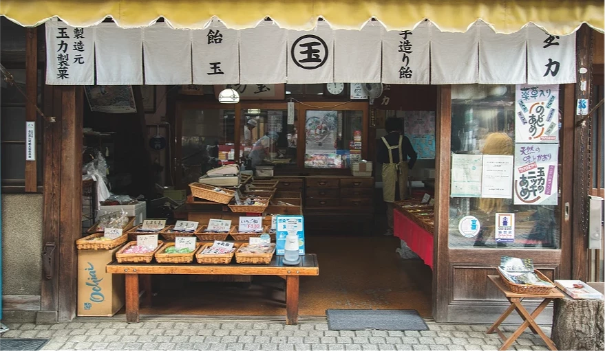 「菓子屋橫丁」是一條短短的石板路,路上空氣中瀰漫烤仙貝的香氣、懷舊的石板步道上木造老屋林立,一走進這條路就像進入時光隧道,回到明治時期。菓子屋橫丁發跡於明治初期,在1920年代取代歷經關東大地震的東京,成為製作販售糖果的重要供應地,雖然現在店舖數量少了很多,但仍有濃濃懷舊氛圍,也可以買到很多特色糖果當伴手禮。