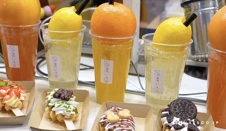 「築地いろは本店」以現榨果汁為主打,提供多款新鮮又天然的飲品。店內鮮果汁皆以新鮮水果現場壓榨,100%純天然完整保留水果原味、營養滿分,深受遊客與在地人喜愛。另外,壓榨後的果肉直接放在杯口上,更是店家最具代表性的特色,造型可愛、吸睛度滿分,是 IG 上的人氣打卡飲品。