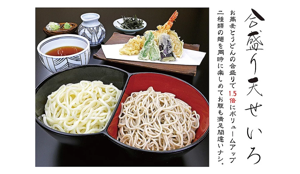 「鎌倉 峰本 本店」推出蕎麥麵和烏龍麵一次享受的「綜合天婦羅冷蕎麥烏龍套餐(合盛り天せいろ)」