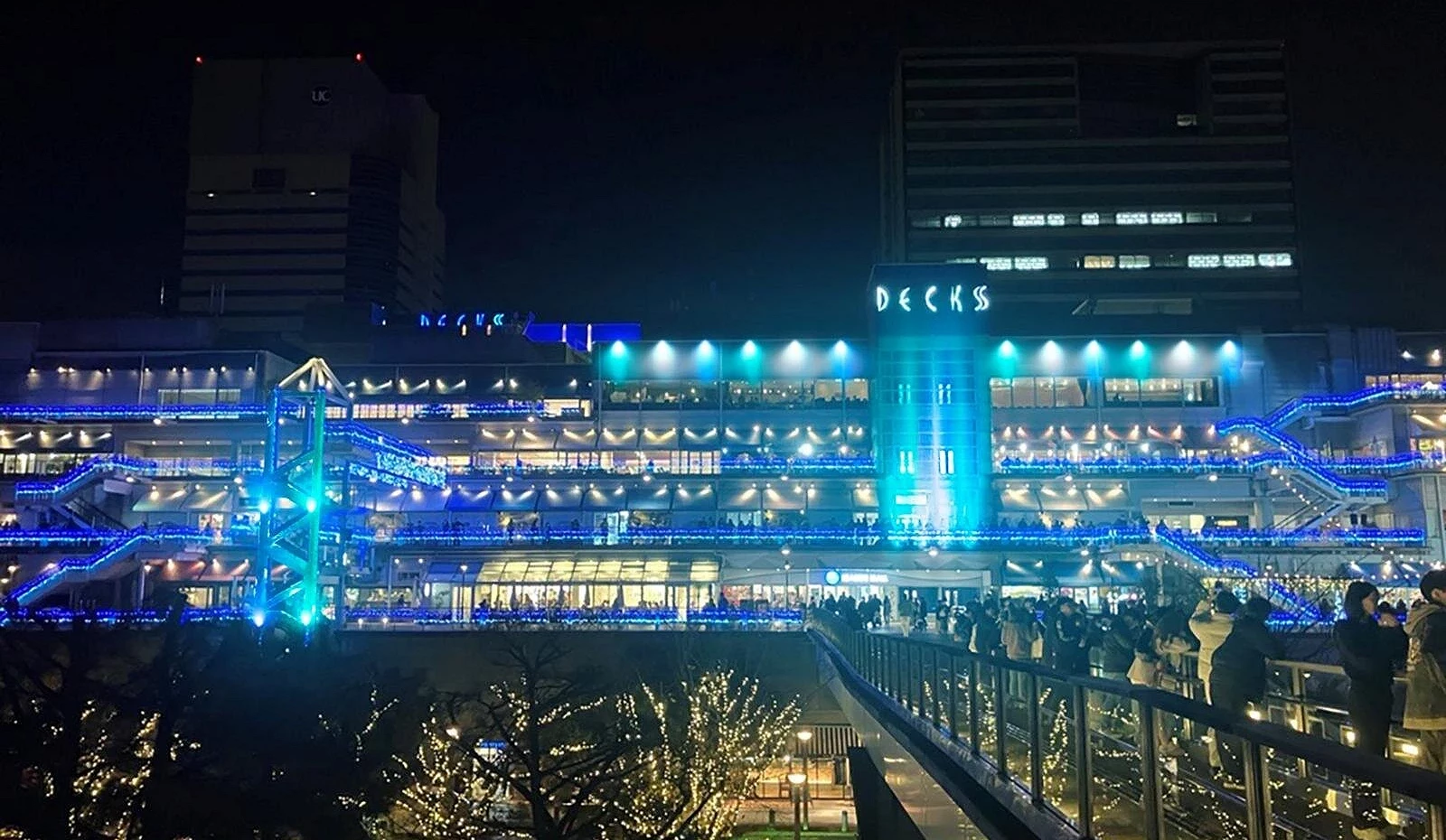 東京灣畔的台場DECKS Tokyo Beach在2025年11月14日(五)至2026年2月27日(五)將迎來冬季限定「台場燈光秀YAKEI(お台場イルミネーション“YAKEI”)」。整座臨海步道將被藍色燈海點亮,搭配彩虹大橋與東京灣夜景,營造出浪漫又充滿節慶感的氛圍。每年冬季都吸引無數情侶、旅人與攝影迷前來,享受東京最閃耀的夜色時光!