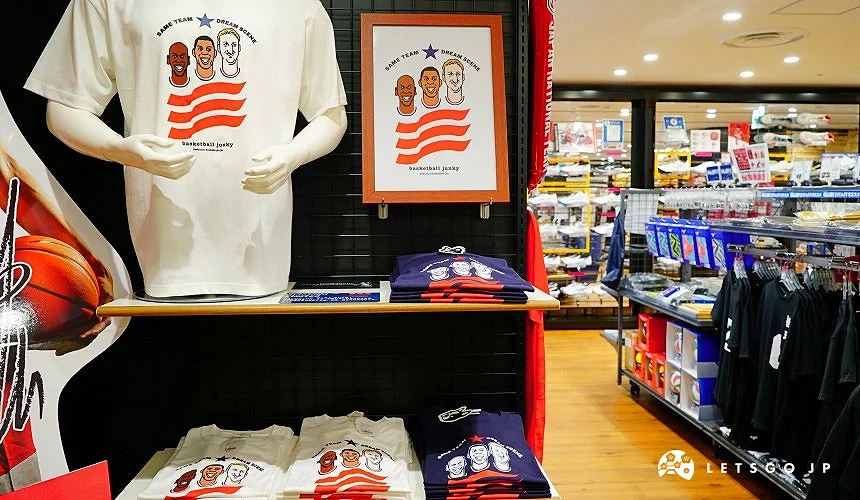 除了球鞋之外,籃球球衣、球褲、帽子、頭帶等籃球周邊商品也一應俱全。不只用品,球迷們最愛的收藏小物:NBA 各球隊球衣、毛帽、T恤、毛巾、筆袋,還有名人堂球星公仔、喬登帽等在店內一字排開。另外還獨家販賣 NBA 名人堂傳奇麥可喬丹、「郵差」卡爾・馬龍、「大鳥」賴瑞・柏德三巨頭的明星隊T恤,穿出去就知道是懂行的夢幻品,過足粉絲收藏癮。