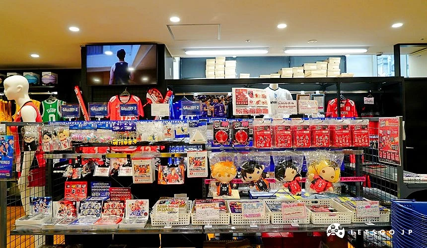 轉彎來到排球粉絲專區:因巴黎奧運而在國內外人氣大漲的日本男子排球隊,近年從日本紅到海外,因此在店內可以看到高橋藍、小野寺太志、石川祐希、西田有志等排球明星的簽名球鞋、簽名球衣、簽名照等,還有運動雜誌、各選手的造型壓克力片,可以挑選喜歡的球員,自製放進透明壓克力環內,成為我推的專屬應援小物!另外,講到排球就必提的動漫《排球少年》也在這邊設有專櫃,可以買到烏野球員們的各背號鑰匙圈、各角色造型布偶等。
