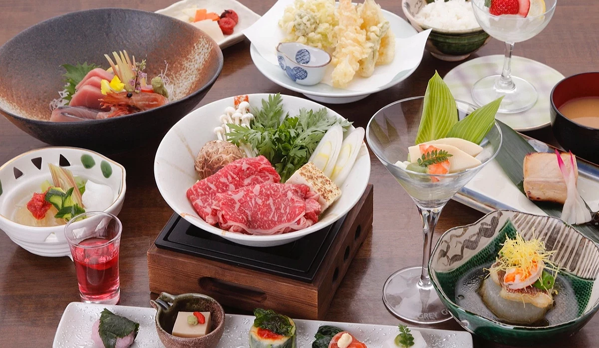 「Nagomi Yamanakako」以使用富士山夢幻之豬,以及A5等級國產和牛的壽喜燒與涮涮鍋為名。數量稀少的富士山夢幻之豬因以富士山湧泉養殖,油脂帶有獨特甘甜、風味濃郁;人氣第一的A5霜降和牛九州王肉質鮮嫩多汁、入口即化,帶有濃厚的甜味與細緻風味,可隨喜好自由搭配自家製的酸爽柚子醋或香濃胡麻醬,是山中湖地區不容錯過的和食名店。