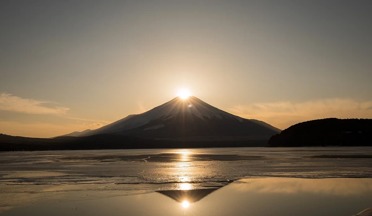當太陽漸落,太陽與富士山山頂重疊的瞬間,山頂發出如同鑽石般的閃耀光芒,鑽石富士旋即誕生。10月中旬至2月底是最容易看到鑽石富士的期間,也因山中湖能觀測到鑽石富士的期間比其他地區更長,因此又被稱為「鑽石富士的勝地」,每年總是吸引眾多攝影師、富士山迷朝聖。