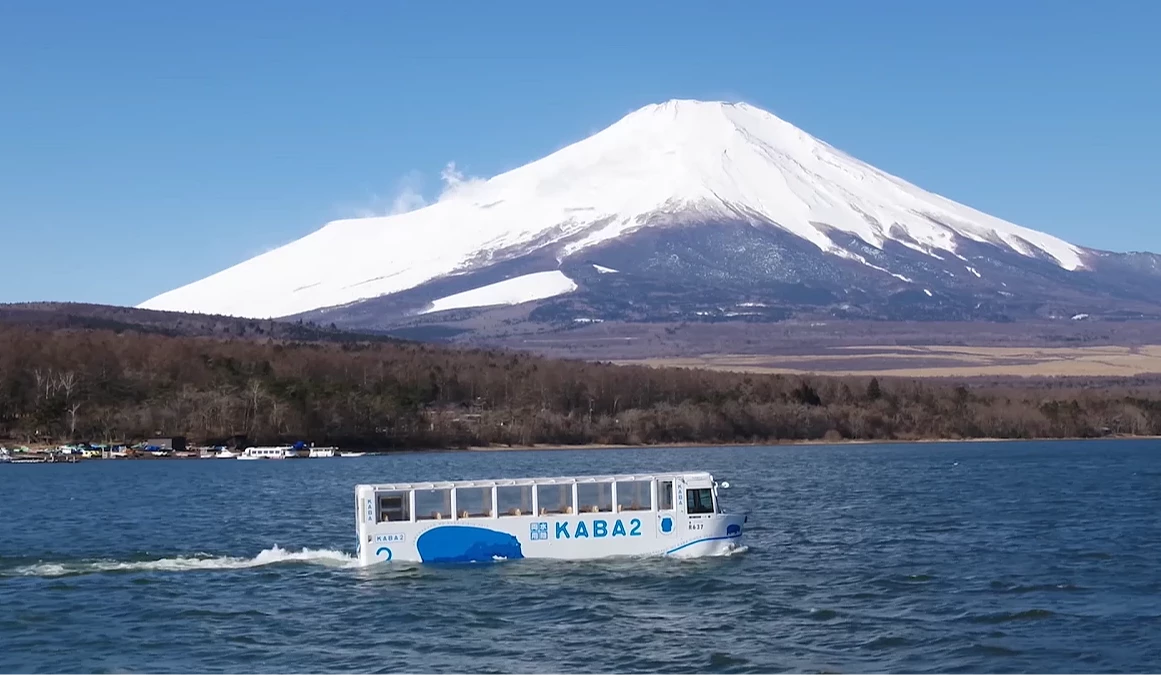 圖片來源:富士急行株式会社搭乘「山中湖河馬水陸兩用船」,能一次體驗到在森林裡兜風、湖面上遨遊,上山下海的特殊體驗,透過五感探索山中湖。車內提供支援英文、中文等五種語言的自動語音導覽系統,能一邊聆聽富士山與山中湖周邊觀光與自然資訊,一邊欣賞富士山絕景與湖畔邊的綿延山脈。由於座位有限,建議事前預約購票,以免向隅。售票所位於「森之站旭日丘店」2樓,1樓售有多種伴手禮,2樓售票口除了兩用船還可購買回新宿、橫濱的高速巴士車票,相當便利。