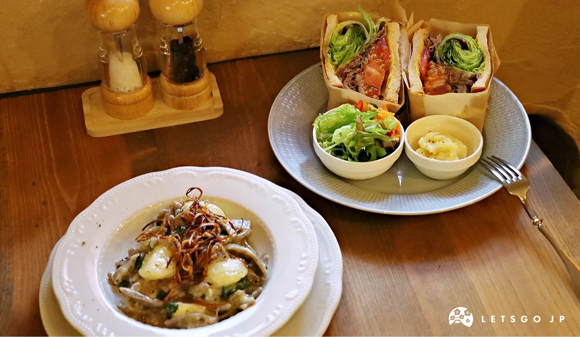 代表菜色義大利北部鄉土料理「ピッツォッケリ(Pizzoccheri)」,是以蕎麥粉和小麥粉混合製作而成的蕎麥義大利麵,麵條寬厚、有嚼勁,撒上一點黑胡椒並搭配上方的洋蔥條食用,麵條的 Q 彈、馬鈴薯的鬆軟綿密、拉絲起司等層次口感在口中衝撞,是令人很驚喜的味道;用料豐富的「烤牛肉蕃茄三明治(ローストビーフとトマトのサンド)」麵包烤得酥脆,烤牛肉大塊卻軟嫩,搭配蕃茄、生菜等吃起來超滿足,且店家對於自家烘焙麵包相當有自信,喜歡麵包的人千萬別錯過!