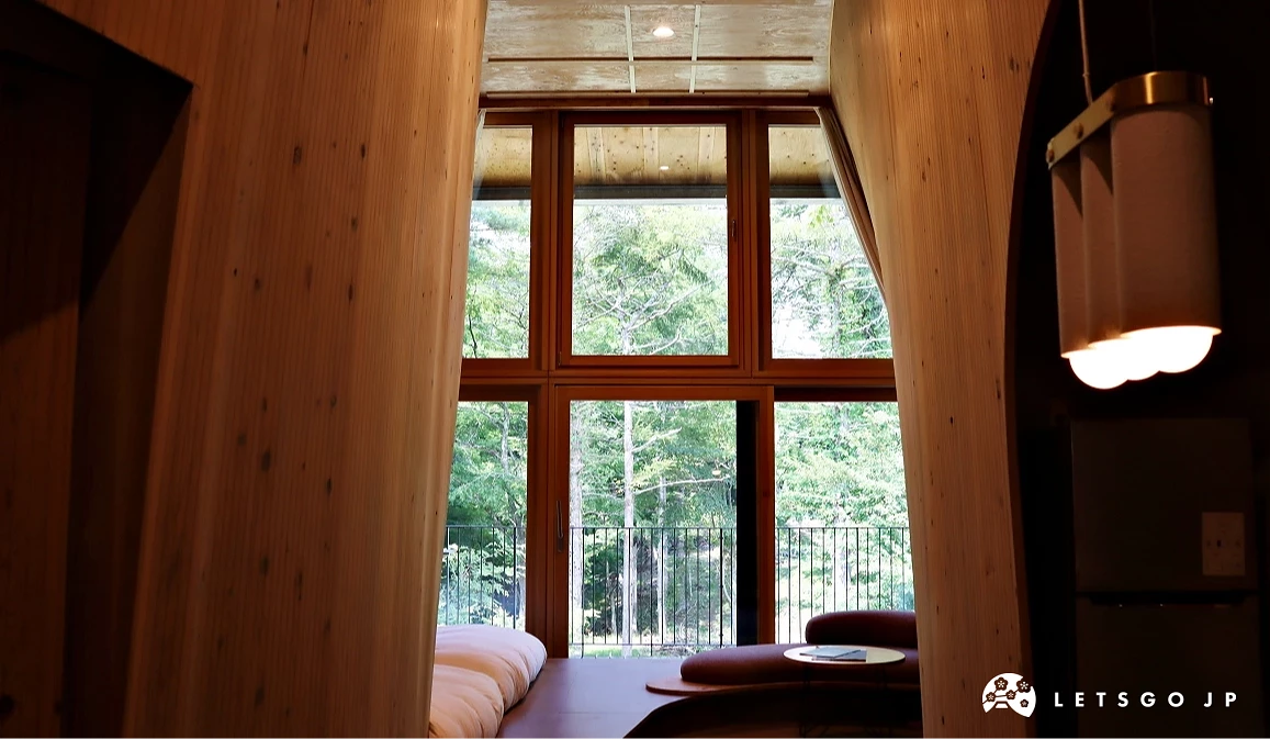 記者入住的1502房型為富士山景致房,能一覽富士山美景(1501~1507及1510房型皆為富士山景致房),推薦給想欣賞富士山日出、日落等不同面貌,卻又不想奔波的人;1501、1507、1511~1515房型還附設桑拿小屋,推薦給想體驗日本三溫暖文化的人。桑拿房內的水滴形狀木板不僅能用來遮擋窗戶,也能當扇子用來搧風,相當有趣。房內皆配備日本低敏有機保養品牌 OSAJI 盥洗用品,從空間設計、食材用具等各種細節,都可見 SANU 對於推動與自然共生的努力,以及對於環境議題的熱誠。