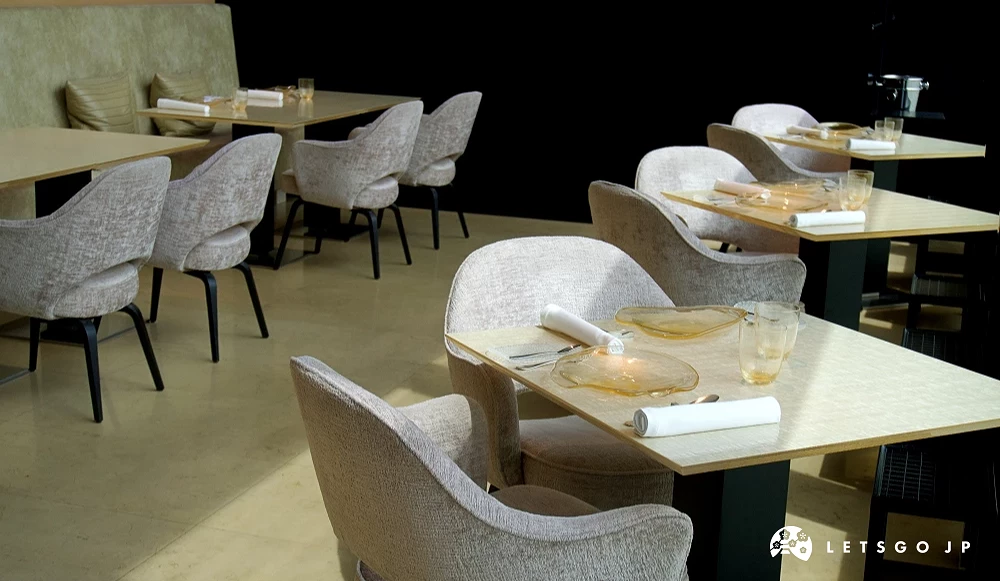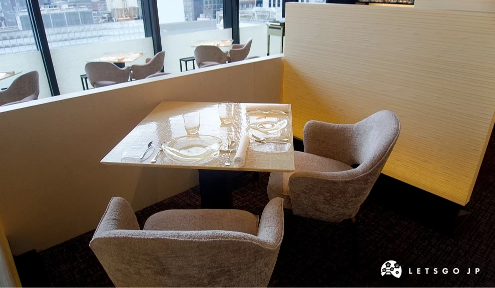 「BEIGE Alain Ducasse Tokyo」的用餐環境沉穩優雅,挑高空間設計簡約卻細膩,營造出如藝廊般的洗鍊感。首先一進到餐廳,可先在彷彿藝術沙龍的待位區休息,等待入座。入座後可發現座位寬敞舒適,加上提供包廂、景觀位等多種選擇,無論是紀念日、重要商務餐敘,或是單純想體驗一次「東京必吃法餐」,都能享受恰到好處的質感。由於週末、晚間預約較多,建議大家可選擇平日中午造訪,並提早預約,更能享受從容自在的用餐節奏。