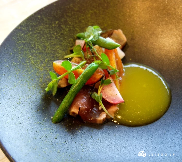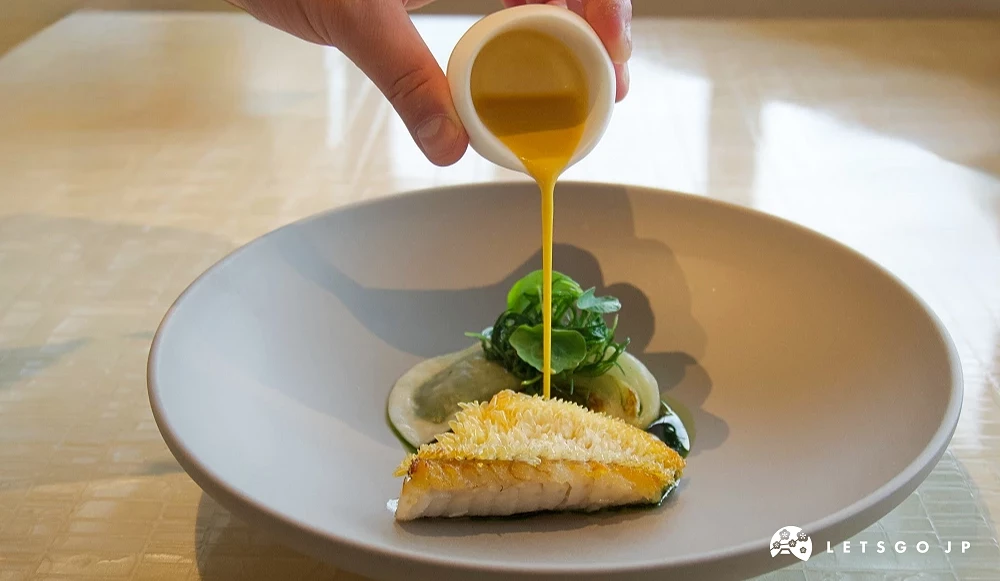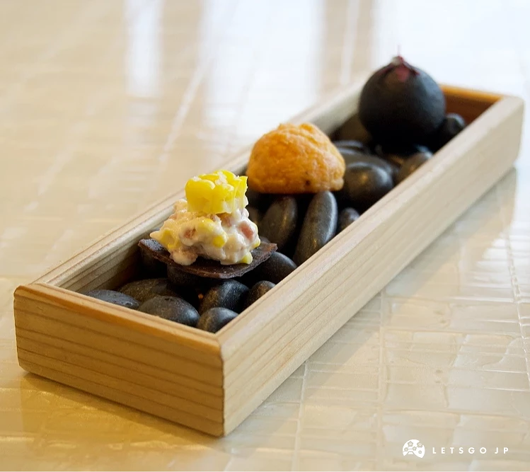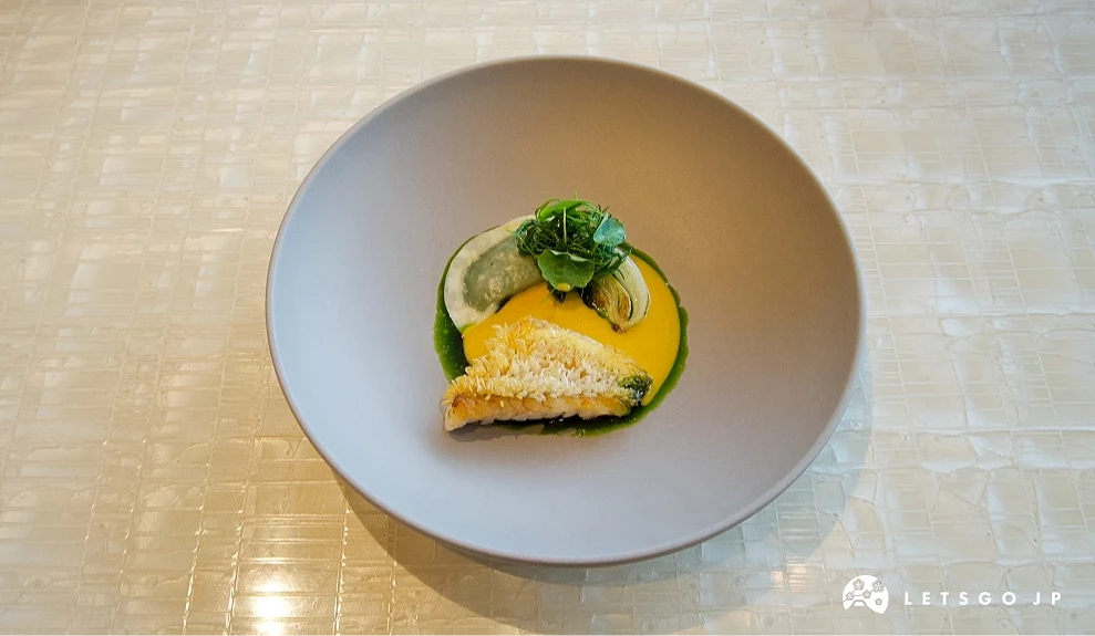餐廳的代表性套餐「Signature」(シグネチャーコース)可說是最能展現「BEIGE Alain Ducasse Tokyo」哲學的美味選擇。餐點的特色在於「均衡」,既不流於繁複,也不過度簡化,而是透過法式技法的骨架,將日本食材的個性精確放大。海鮮料理的鮮明清爽、肉料理的扎實濃厚,讓整場用餐經驗有著豐富層次。加上座位設計得宜,既開放又能保有私人空間,服務節奏也掌握得宜,有被照顧的感覺,卻不讓人感到壓迫,讓人能專注在品味餐點的細節,從味覺到氛圍,形成完整的高級餐飲體驗!以下就來進一步這份套餐的料理亮點。