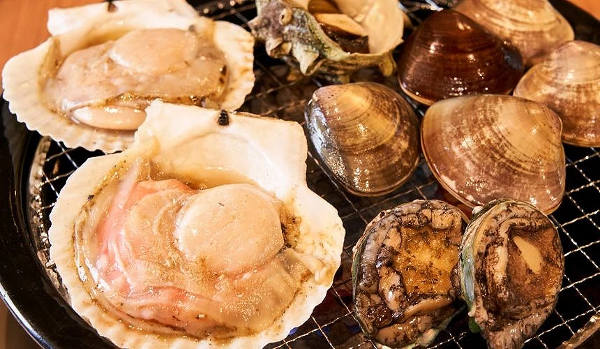 「玉手箱」(tamatebako)的另一大特色是同時提供生食與燒烤兩種吃法,生食部分有日本產黑鮪魚、生蠔,以及鮭魚、鯛魚、干貝、牡丹蝦、甜蝦等多款刺身;喜歡熟食的人,則可在桌上享用 BBQ,鮑魚、牡蠣、干貝、蛤蠣與花枝等海鮮自己現烤現吃,滋味更加鮮甜,螃蟹同樣能依喜好選擇生吃或燒烤,多樣的料理方式展現不同層次風味,讓人一次體驗海鮮的多重魅力。