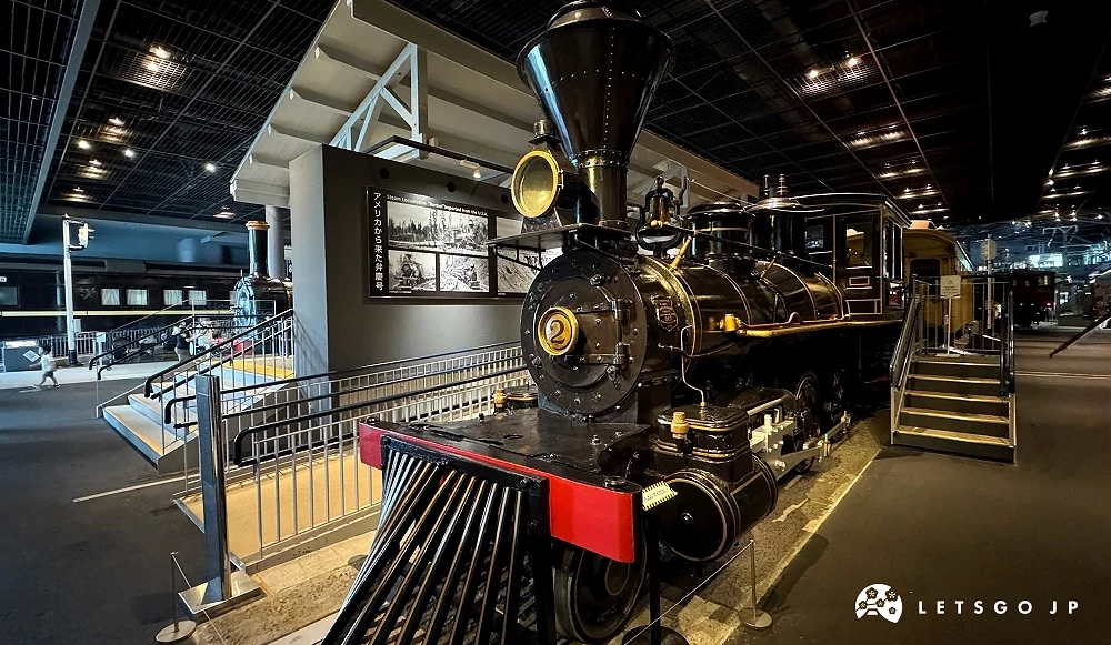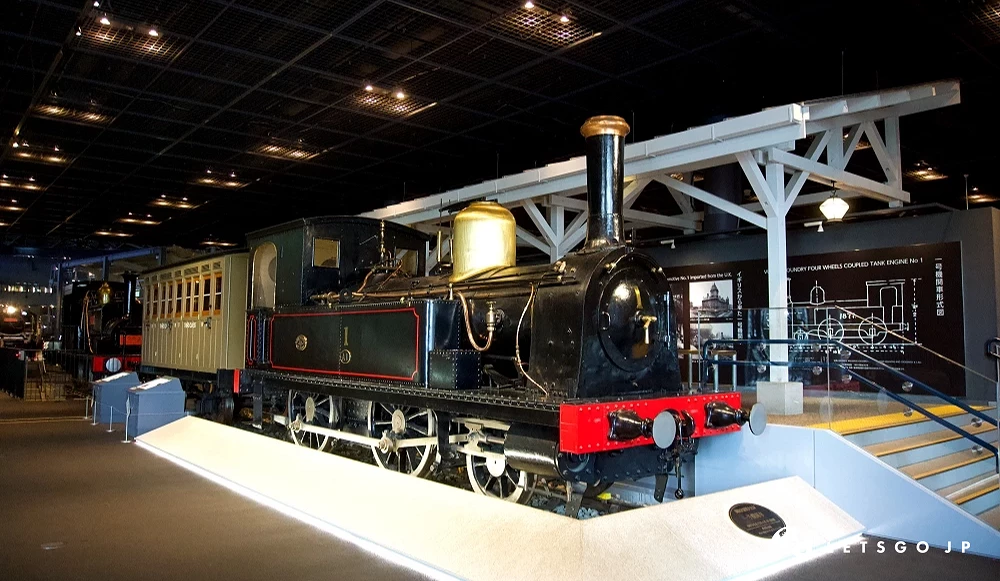 首先,一踏入展示區,就由被認為是日本鐵道開端象徵的「1號機關車」(150形蒸汽機車)來迎賓!這輛於1871年自英國引進的元老火車,參與了新橋至橫濱間鐵道開業的里程碑,又曾服役於日本國鐵、島原鐵道,退役後自 1936 年起於第一代鐵道博物館展出,1997 年更成為日本首輛被指定為「重要文化財」的鐵道車輛。漆黑的車身,點綴上紅色與金色的配色,至今仍展現著華麗又不失莊重的姿態。