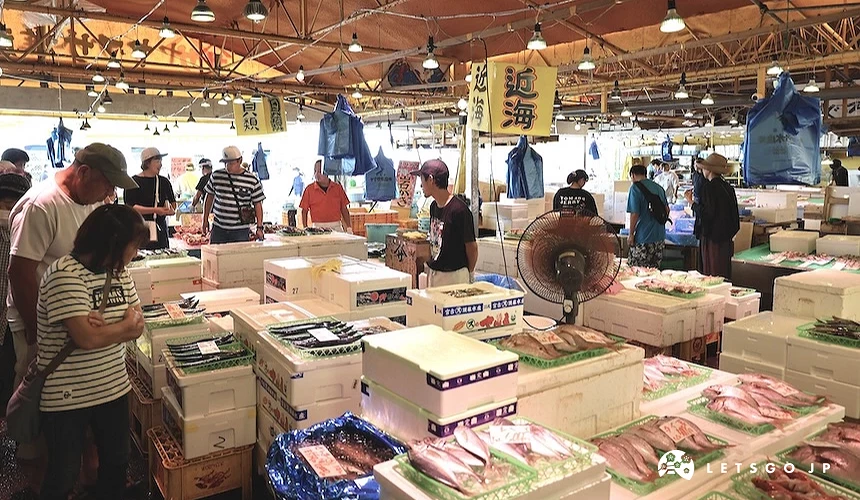 水產市場的生鮮販賣約早上8點營業,餐廳大多在10點後開店,下午4點左右陸續收攤打烊。因此建議10點前後抵達,先逛市場再用餐最合適。但像是人氣的「市場壽司」最好10點營業時間開始就去,最晚不要超過12點,不然有可能會吃不到唷!