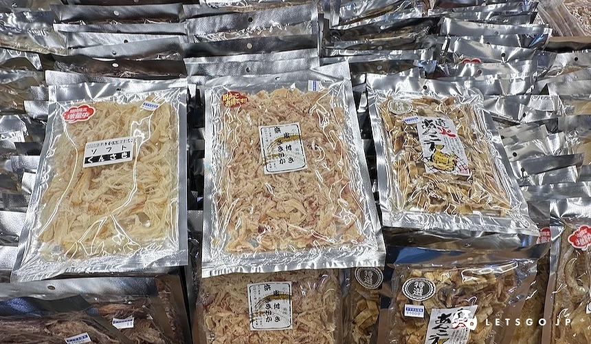 市場內兩大水產店「森田水產」「YAMASA水產」不僅能買到價格便宜又新鮮的漁獲,也販售乾貨、調味品與伴手禮。魷魚絲、螃蟹味噌湯包、鮮魚風味調味鹽等都很受歡迎。若住在附有廚房的飯店,也一定要試試大買食材回去料理,吃海鮮吃個過癮!
