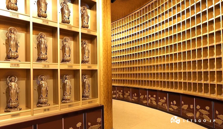 3樓是一個金色輝煌、莊嚴肅穆的空間。四周環繞著約3,400尊小佛像,參拜者仿佛置身於佛國淨土。每天早晚,這裡都會響起誦經聲,氣氛莊嚴神聖。參拜者還可將先人或親友的名字寫入法名帳,並安奉於胎內佛中,以祈求永恆庇佑。若有心供養,能以30萬日圓奉納一尊小佛像,寺方也歡迎外國人參與供養。這一層結合了供養、祈福與紀念,是最能感受信仰厚度的地方。