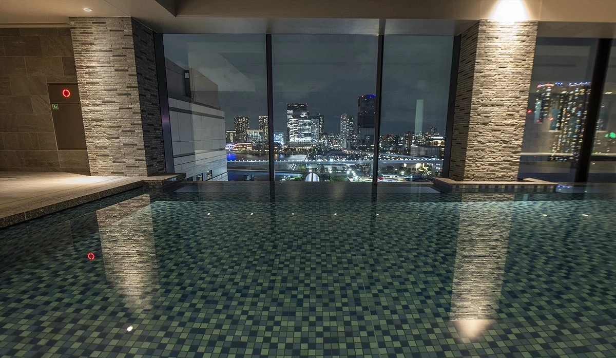 14樓的室內游泳池採無邊際風格設計,角落還有一個按摩浴缸,在水面上就能感受港灣與天際線環繞的氛圍。白天沐浴自然光線,夜晚則能邊游泳邊賞夜景,更添浪漫氣息。加上泳池設置在室內,即使下雨天也能使用,如果平時有游泳習慣一定會非常喜歡這裡!