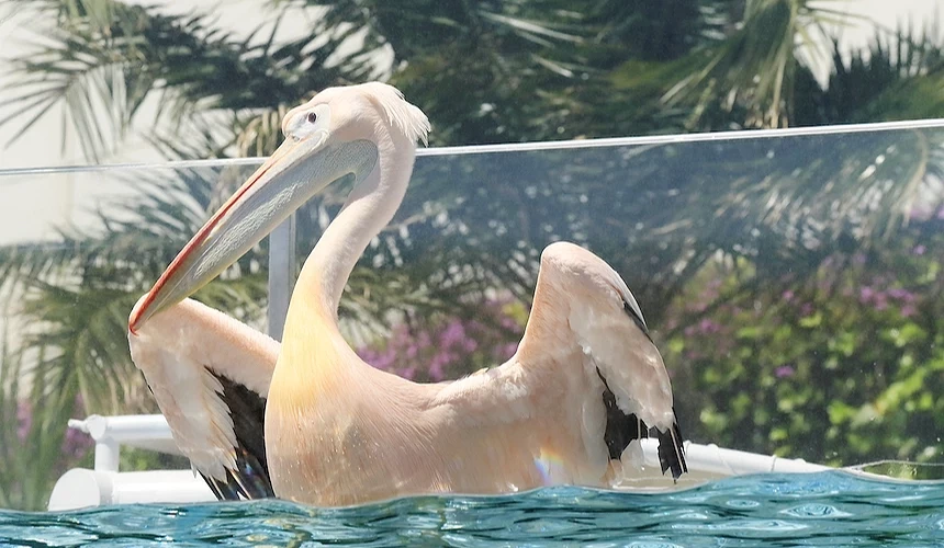 「水獺們的岸邊」則有因為可愛動作而相當有人氣的小爪水獺!在這裡可以看到牠們在草原上奔跑、深潛進水中等最自然的模樣,運氣好的話,說不定還能遇見在館內散步的水獺喔。在「天空通道」一抬頭就能看到在長達30公尺的水槽內,時而休息時而自在漫步的白鵜鶘。飼養人員餵食鵜鶘時,可以看到牠們張開大嘴捕食的魄力身姿。「閃光泉」則可看到最大全長超過一公尺的骨舌魚和大顎小脂鯉,餵食時,則可以看到牠們從水中一躍而上的樣子!