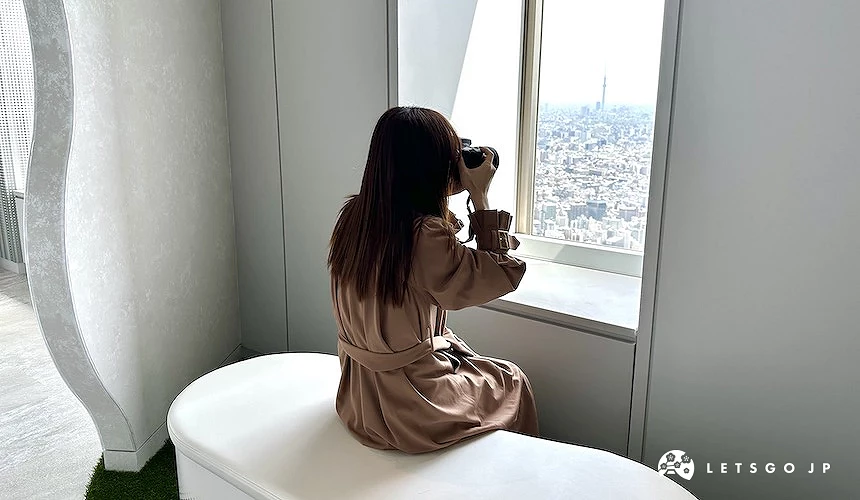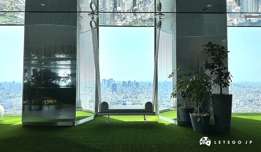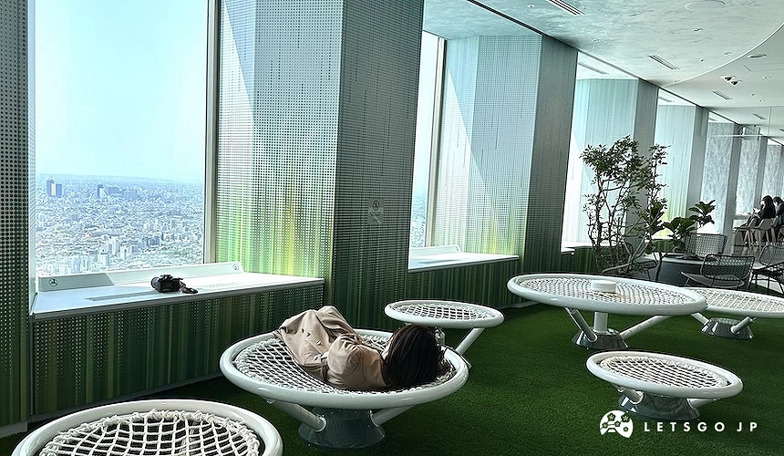 其實展望公園的設計巧思,從搭電梯的過程就開始了!挑高的電梯間投影了森林的影像並灑上樹木香氣的精油,讓人立即就有來到公園的放鬆感。瞭望台有提供日語、英語、繁體中文、簡體中文、韓語的導覽影片(額外費用)。由於池袋是動漫聖地,設施還特別請到了曾在《催眠麥克風》、《鬼滅之刃》、《AKIBA'S TRIP -THE ANIMATION-》等作品登場的聲優石谷春貴,擔任導覽日本版影片的配音,對日本動漫和聲優有興趣的人可別錯過!